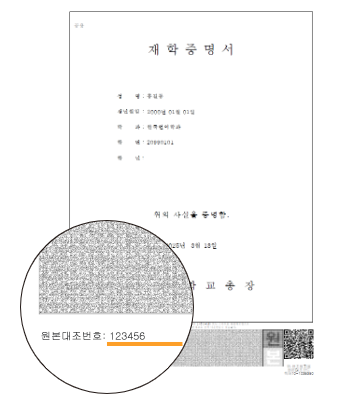 증명서 번호로 원본 검증